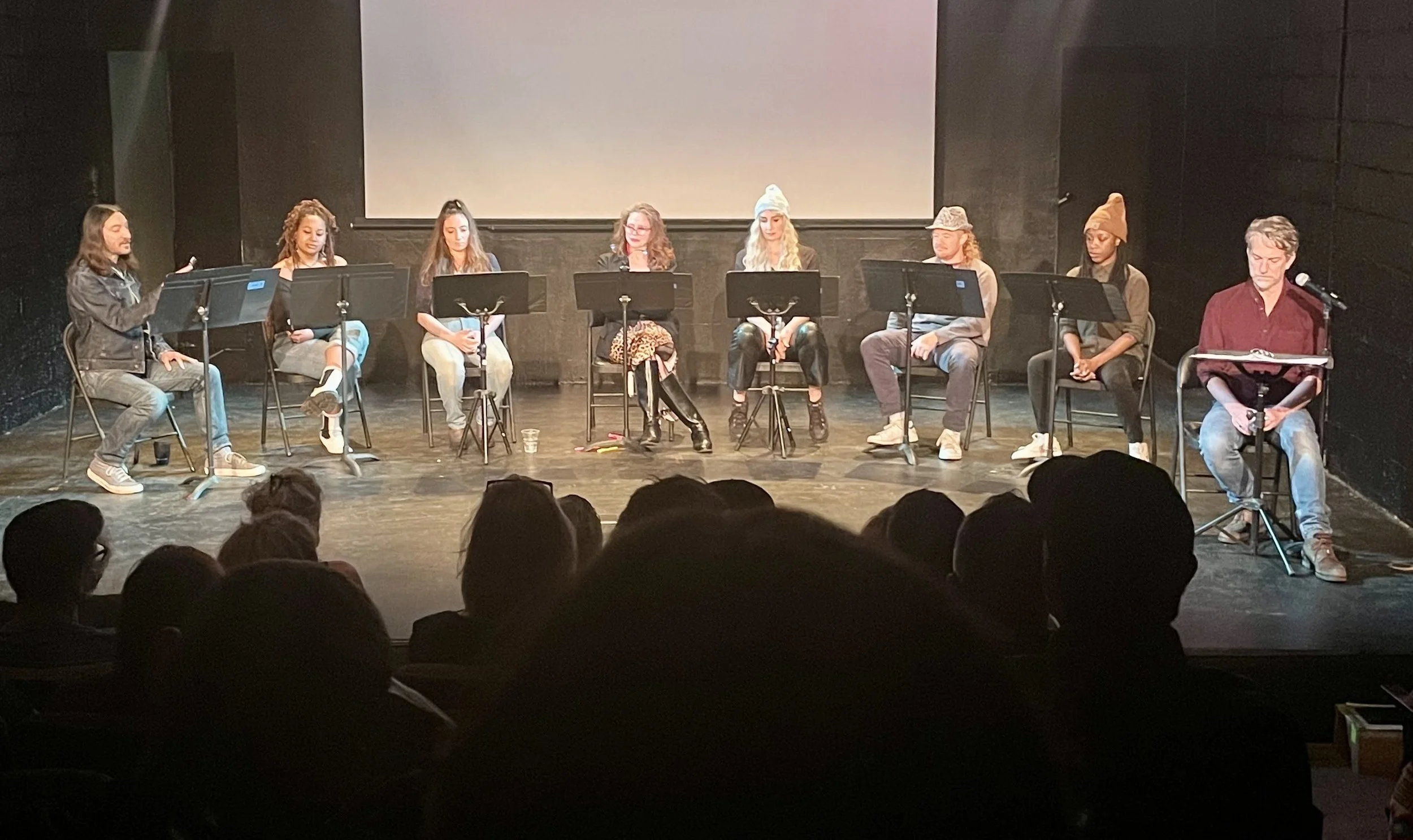 L to R: Jason Harris, Talia Paulette Oliveras, Anni Rossi, Heather Litteer, Jill Pangallo, Becca Blackwell, Yansa Fatima and Mike Albo.