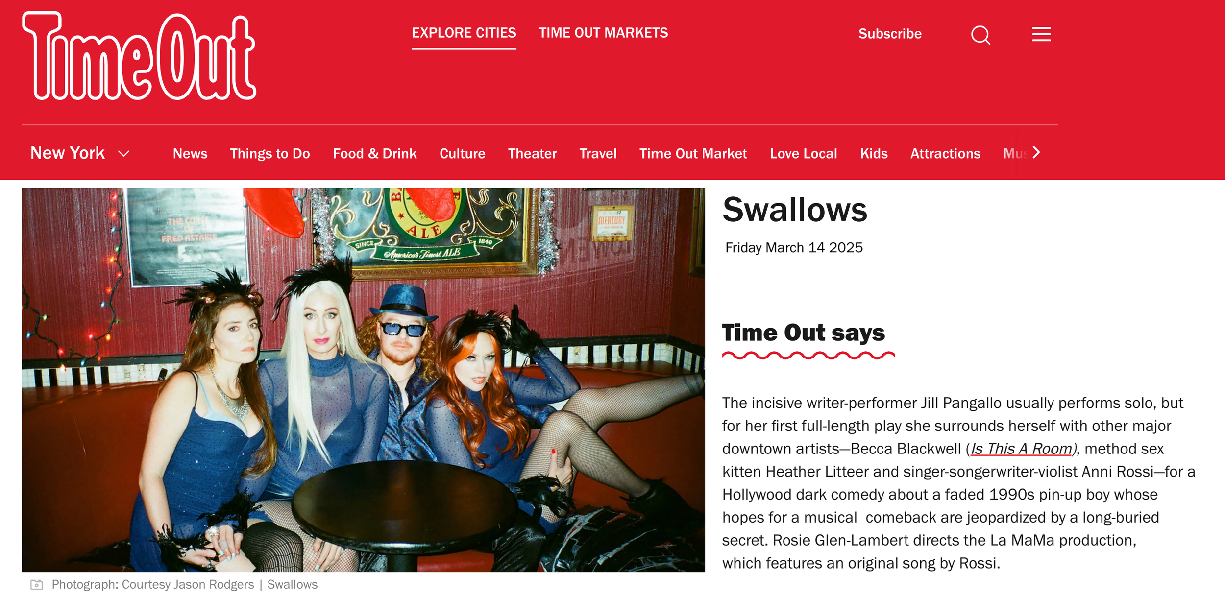 Image ©2024 Jason Rodgers at the Parkside Lounge (LES, NYC). L to R: Anni Rossi as Iris Wolff, Jill Pangallo as Brie Glazer, Becca Blackwell as Brodie Glazer & Heather Litteer as Sloan Stone.