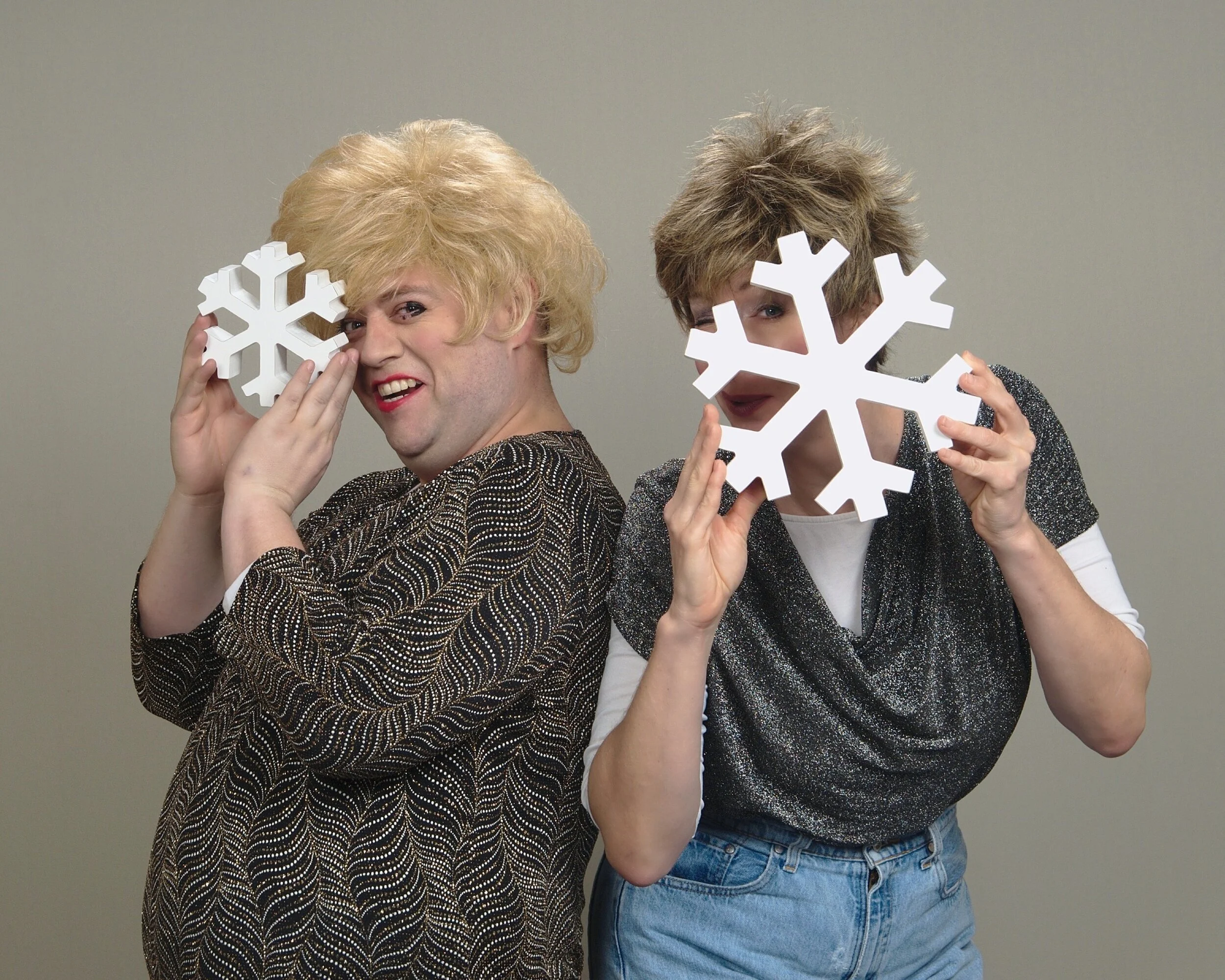 Nothing warms Jane and Pam’s hearts more than their annual holiday photo shoot at Penney’s Portrait Studio. This year, they went for an elegant, sparkly look that works equally well for New Year Well-Wishing. Visit the world of Jane Johnson here.